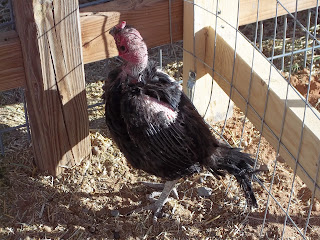 We tried to put her in with Pendar, but he decided to romance her...and was so rough, the poor little hen was shrieking in pain and terror. She is so small. Easily half the size of Zoe.